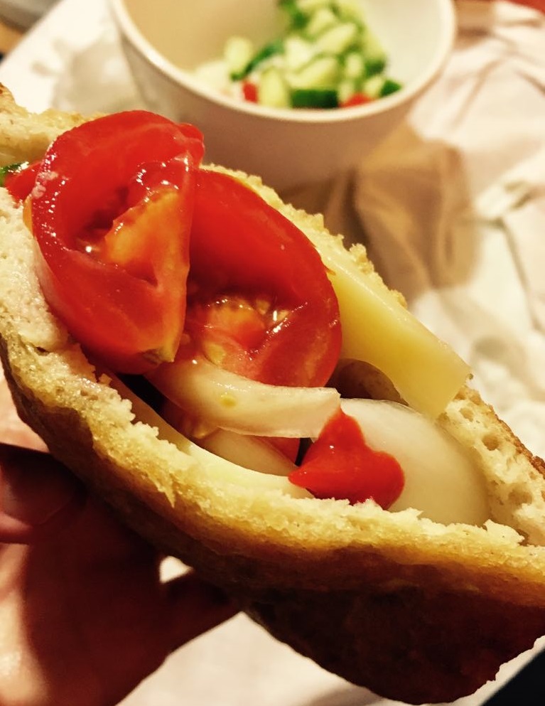 Az első próbálkozás picit csalódás volt, mivel az albérletben régi a sütő és a pita közepe félig meddig nyers maradt. Nem akartam feladni, úgy éreztem már közel járok a sikerhez. Állítgattam pár dolgot a sütőn, hosszabb ideig hagytam bent a tésztát, fordítgattam becsülettel és egyszer csak sikerült. Győzelem!