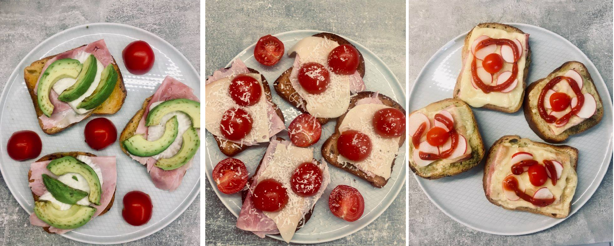 Feltét 1: főtt sonka, francia sajt koktélparadicsommal és reszelt parmezánnal