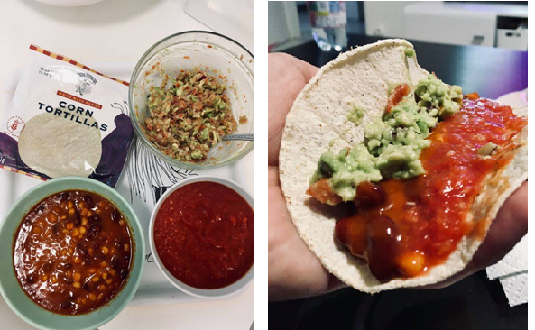 A diétával eltűnő büféket bármikor meg tudom teremteni otthon is, csak itt a gyorsételhez sokszor idő kell magam készíem el. Hamburger, gyros, tortilla. A konyhámban születnek meg egykori kedvenceim. Ez a taco számomra a leggyorsabb gyorsétel, amit el tudok készíteni. A tortillát készen veszem, ahogy a mexikói konzervet is. Így csak a guacamole és a salsa összeállítása marad. Általában vegetáriánus változatban eszem (leginkább lustaságból). Néha darált sertéslapockát pirítok hozzá, amit összekeverek a mexikói babos-kukoricás konzerv tartalmával.