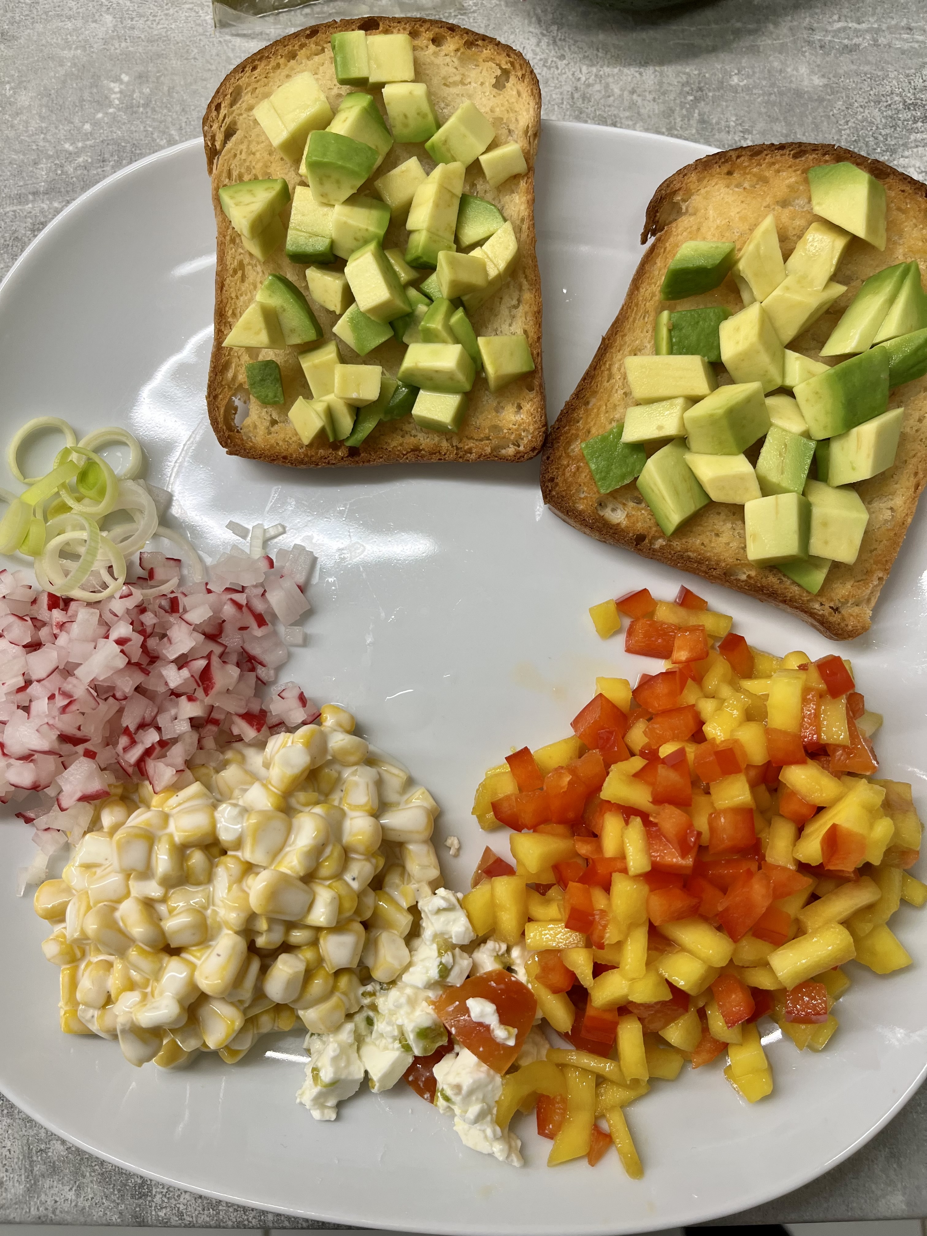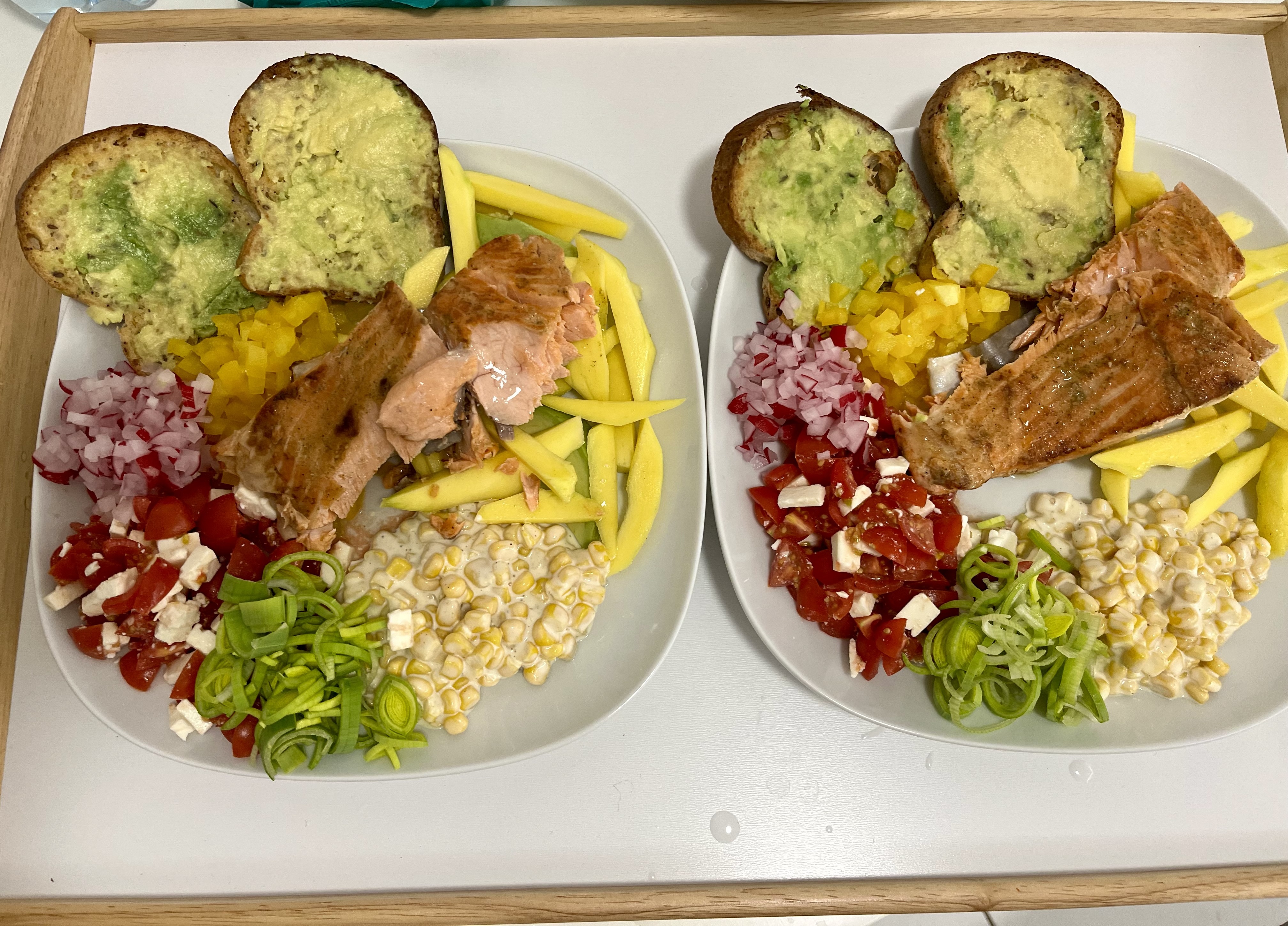A finom tányér olyan, mint egy jó focicsapat. Lehet benne egy kiemelkedő szereplő, de valójában az összjátékon múlik a siker. A lazac a csatár, de kellenek védők, kapus és ott a középpálya is. A tányéron különböző állagok találhatók: a roppanós pirítós, a krémes avokádó, az édes mangó, a könnyed zöldségek, a hideg kukoricasaláta. Rendszerint három-négy különböző köretelemet készítek hozzá. A felsoroltakon kívül pedig ősszel sült zöldségekkel is tálalni szoktam, ha a megfelelő évszak mellett még az időből jut bőven.