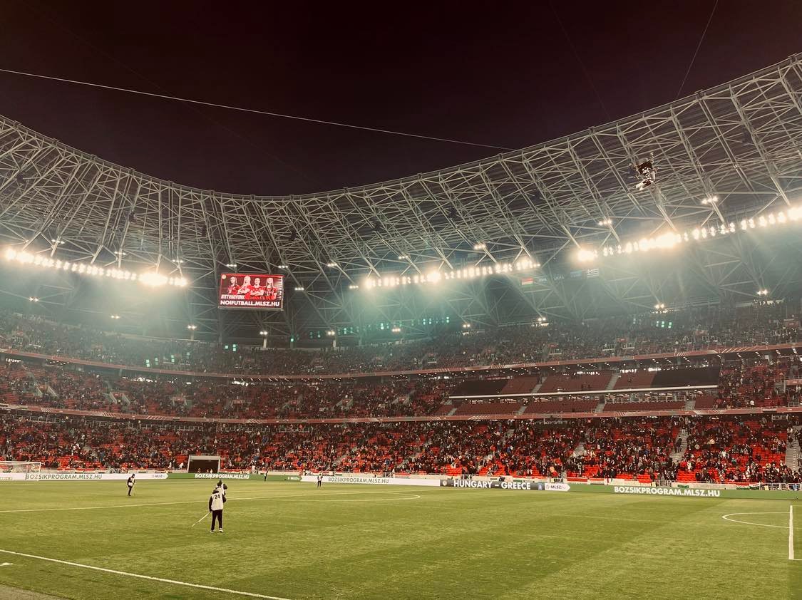 A fenti képet a 2022. november 20-i, Magyarország-Görögország barátságos mérkőzés félidejében készítettem. Ezen a napon indult útjára a 2022-es labdarúgó-világbajnokság, melyet végül egy igazi messiás, Messi vezényletével Argentína nyert meg.